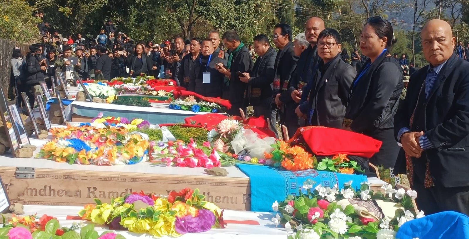 The decent and honorable mass burial ceremony under the theme, "You Sacrifice Your Today For Our Tomorrow" conducted under the aegis of the Committee on Tribal Unity Sadar Hills at the Martyrs Cemetery at Phaijang village was attended by more than ten thousand people across the district.