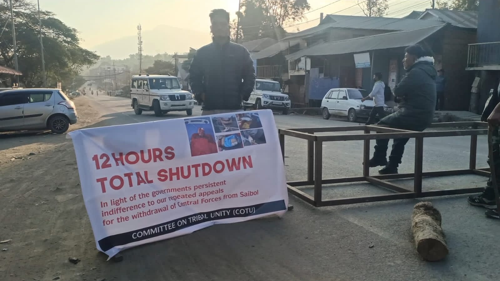 The Committee on Tribal Unity (CoTU), Sadar Hills, has intensified its pressure against the continued deployment of central forces from the valley to Saibol village in Kangpokpi's Lhungtin Sub-Division by enforcing a 12-hour total shutdown across Kangpokpi district. This move comes alongside the ongoing indefinite economic blockade along National Highway-2, further exacerbating the region's socio-economic challenges.