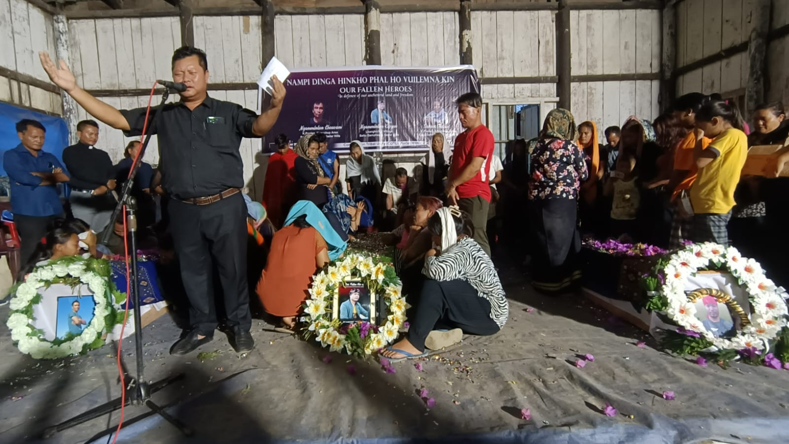A condolence service under the aegis of the Committee on Tribal Unity Sadar Hills Kangpokpi was held at Motbung Community Hall, where thousands across Kangpokpi mourned the dead of the trio while vehemently condemning the incident of the brutal killing.