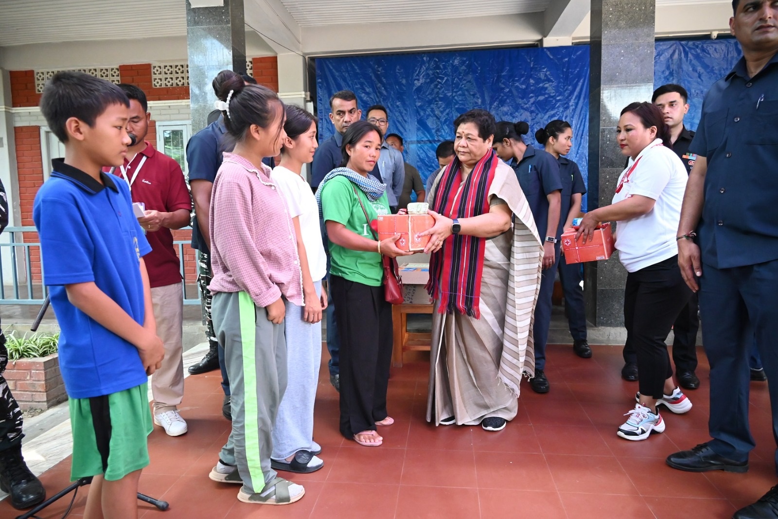 The Governor also interacted with families of ex-servicemen and CSO leaders at Headquarters 27 Sector, AR located at Tuibong and heard their grievances. Kuki Inpi, ITLF, Kuki Women Organization for Human Rights (KWOHR) submitted a memorandum to the Governor. As the President of Rajya Sainik Board, Governor donated a cash of Rs. 15,000 to seven ex-servicemen families along with some relief materials (blanket, jumbo box etc.). She also handed over relief materials to the district’s Red Cross Society.