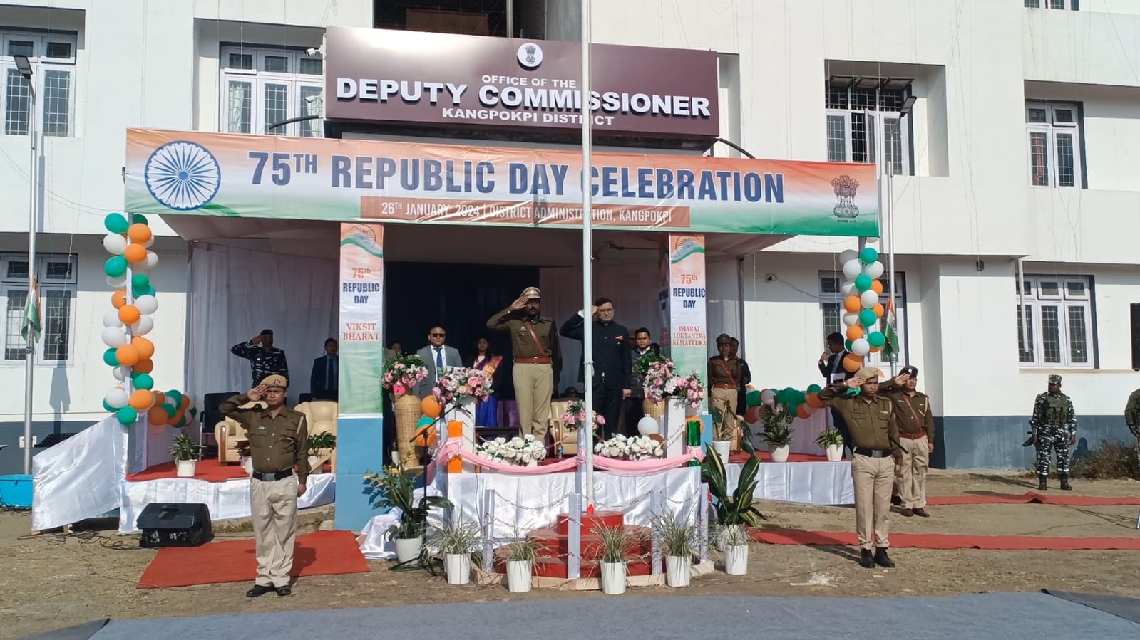 People across the district headquarters and adjoining areas, young and old, boys and girls, men and women, started gearing up and gathered at the DC Kangpokpi office complex with joy and enthusiasm to enthuse for the momentous celebration when black flags are hoisted to mark the auspicious occasion in some parts of the state, especially in the valley as some insurgents and student bodies boycott the significant India's Republic Day.