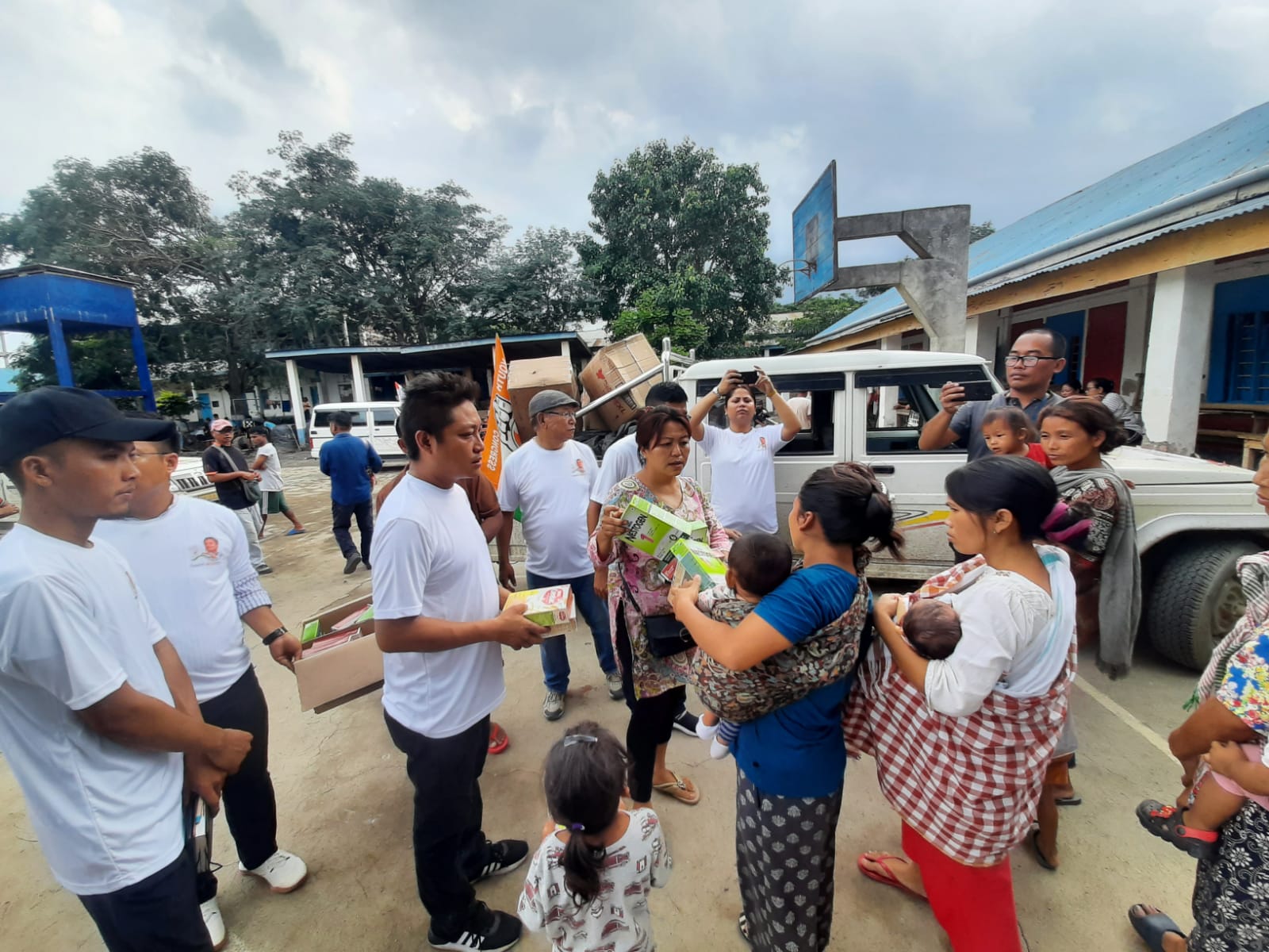 Distribution of relief materials at Churachandpur College Relief Centre