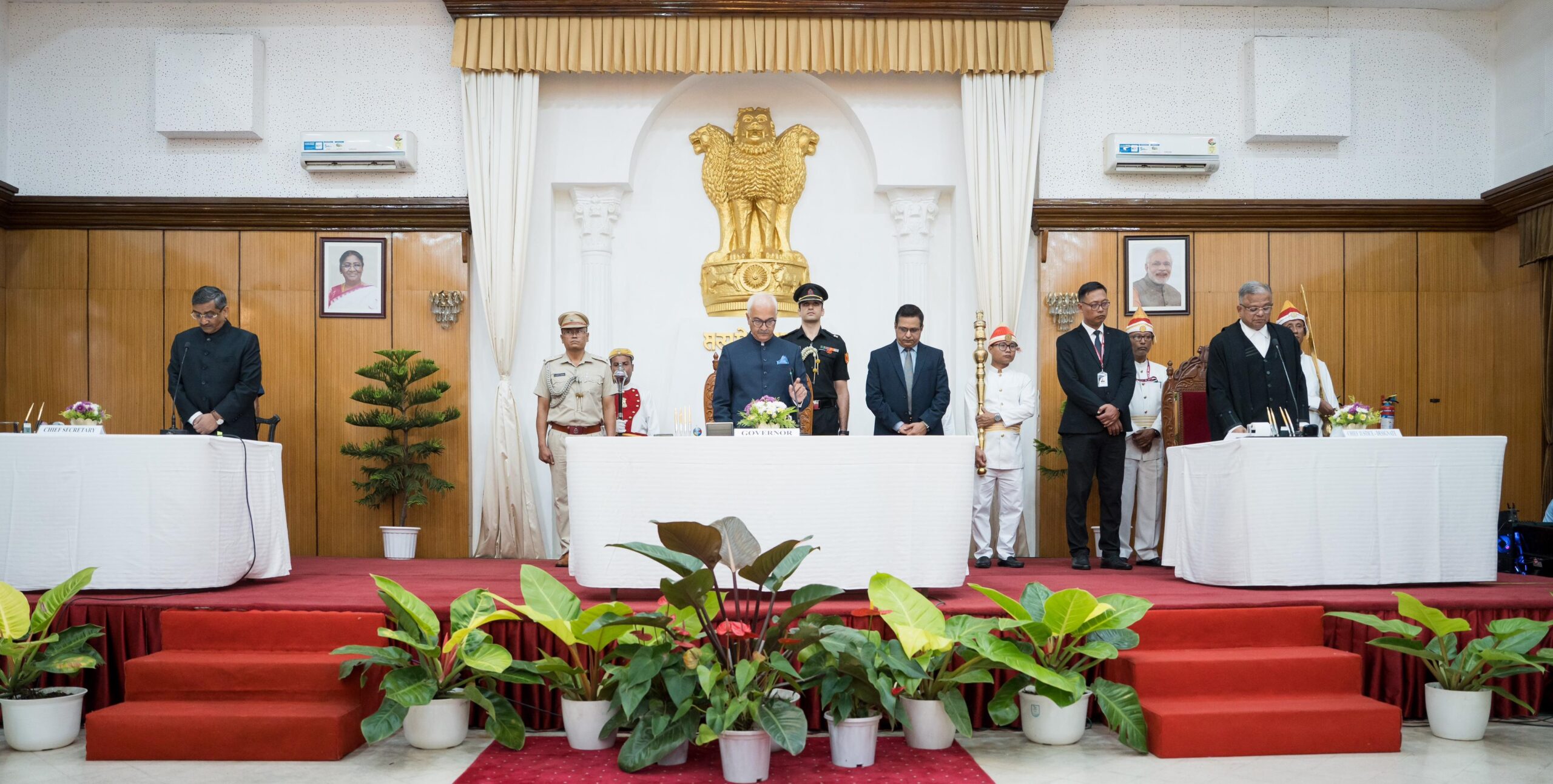 Speaker of Manipur Legislative Assembly, MLAs, Judges of High Court of Manipur, Chief Secretary, Security Advisor, Director General of Police, civil, police, military, judicial officers and representatives of Bar Associations attended the Swearing-in Ceremony. (DIPR)