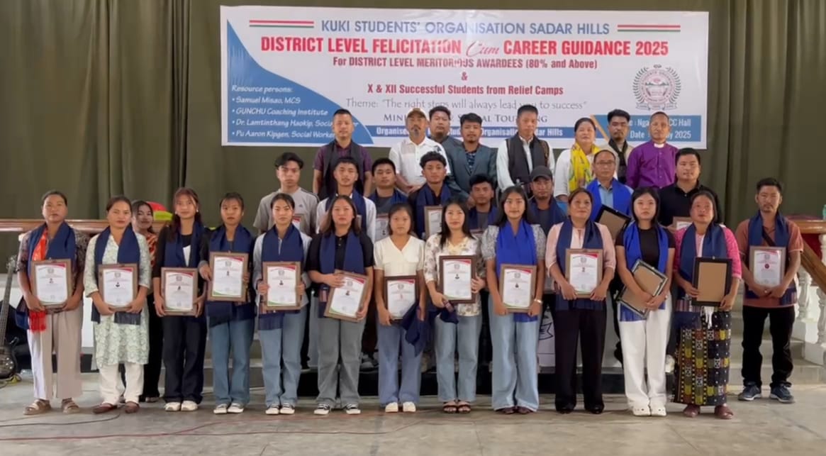 In a moment that shone like a beacon of hope amid hardship, the Kuki Students’ Organisation (KSO) Sadar Hills on Thursday honored around 60 successful Internally Displaced Students of Class X and XII from various relief camps across Kangpokpi district, alongside 40 other outstanding students who secured above 80% in the recently declared board and council examinations.