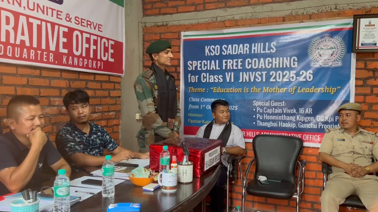 The Kuki Students’ Organisation (KSO) Sadar Hills has launched Special Free Coaching for Class VI JNVST 2025–2026, marking a bold step in its education reformation policy. The programme, themed “Education is the Mother of Leadership”, was inaugurated today at the KSO Sadar Hills Adminstrative office in Kangpokpi Town.