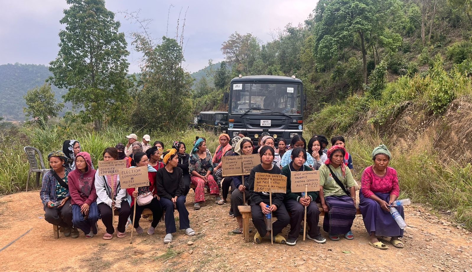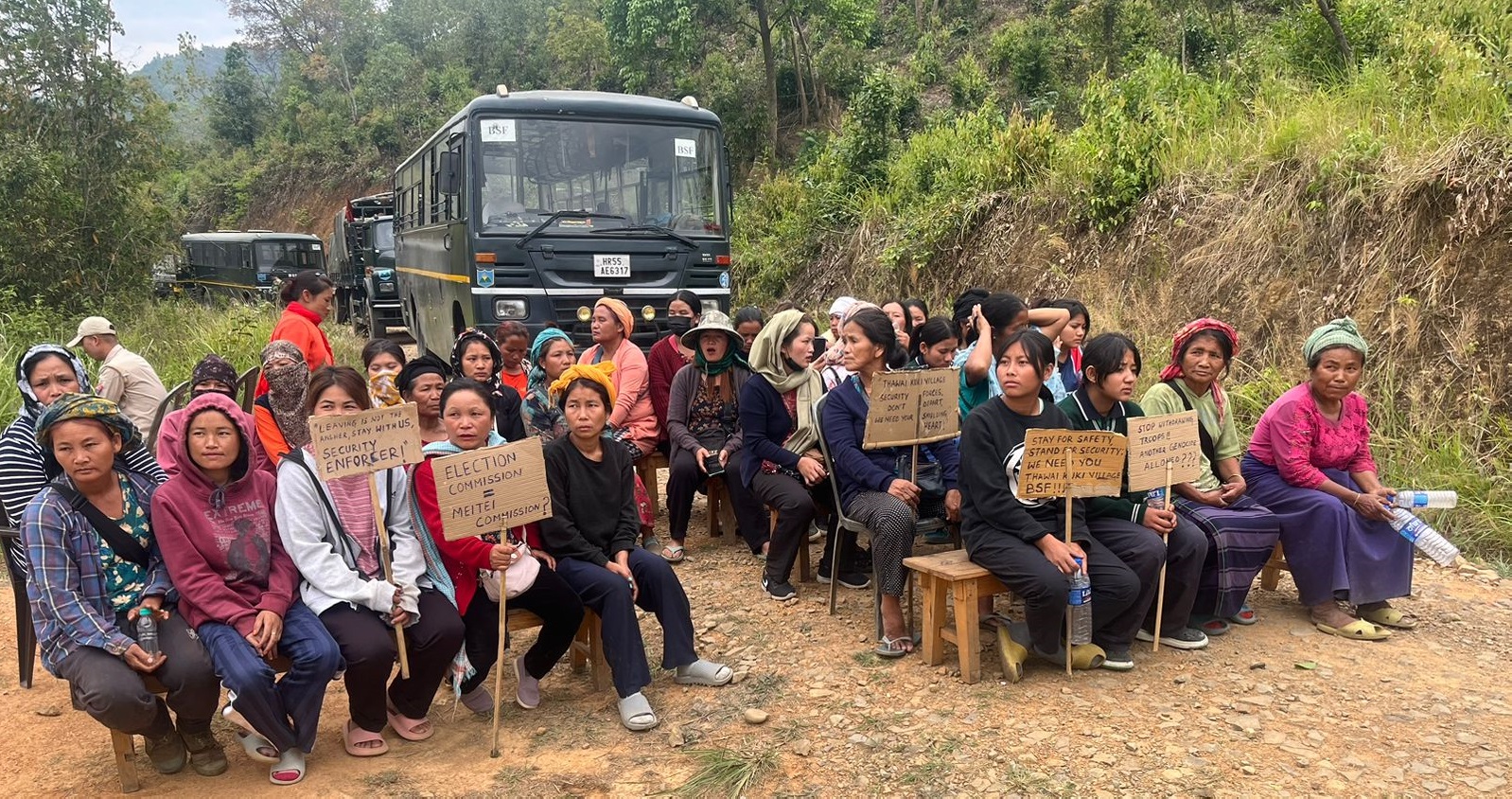 Villagers of Thawai Kuki, mostly women, in Kamjong district under Litan Police Station took to the streets early this morning at around 6:00 a.m. protesting against the Ministry of Home Affairs' order to remove BSF personnel stationed in their village.