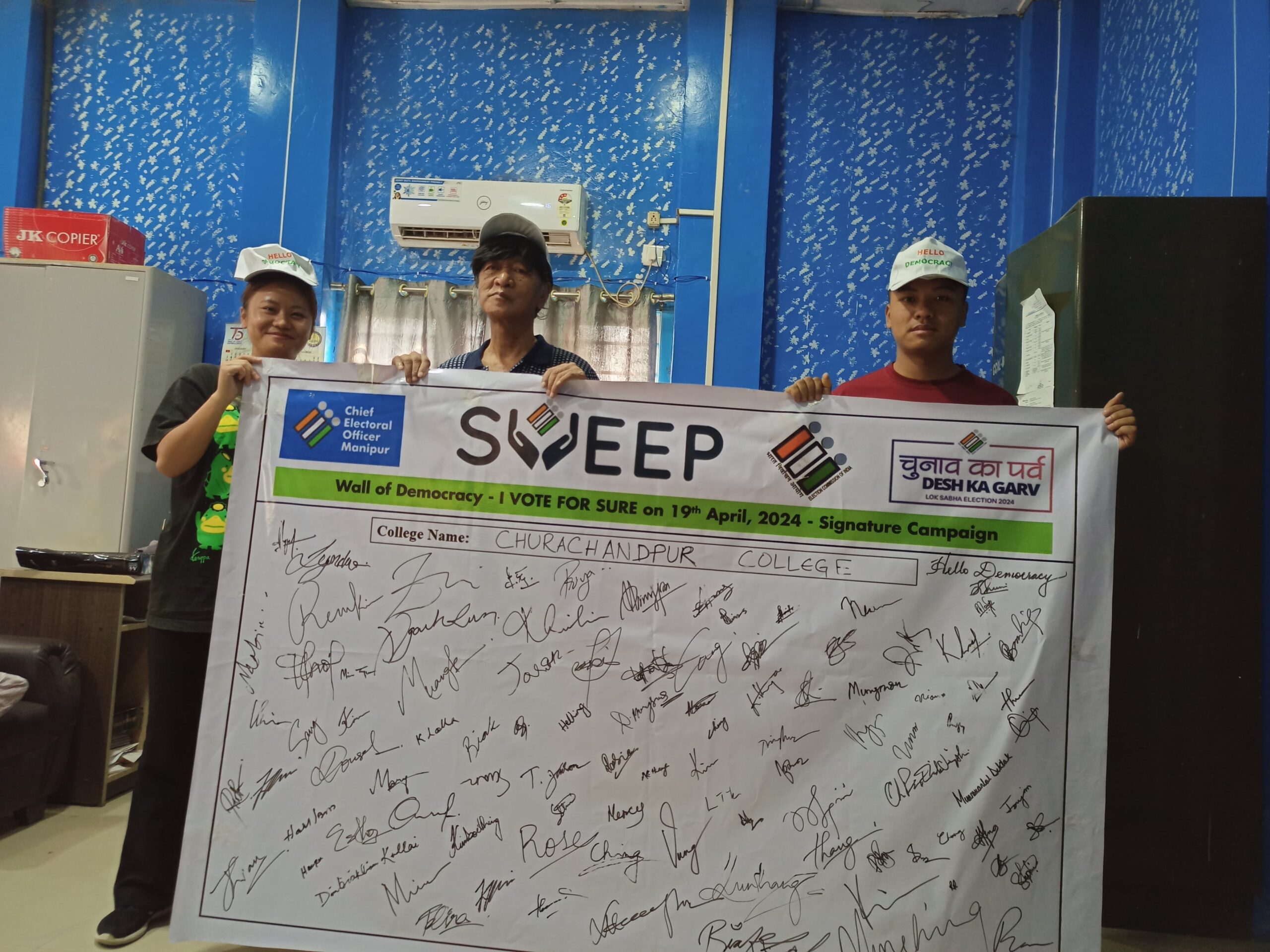 At the same time, Wall of Democracy (a signature campaign in College) as part of SVEEP activities was held at Churachandpur Govt College today under the auspices of SVEEP Nodal Officer Vidyamari Sridhar, IAS.