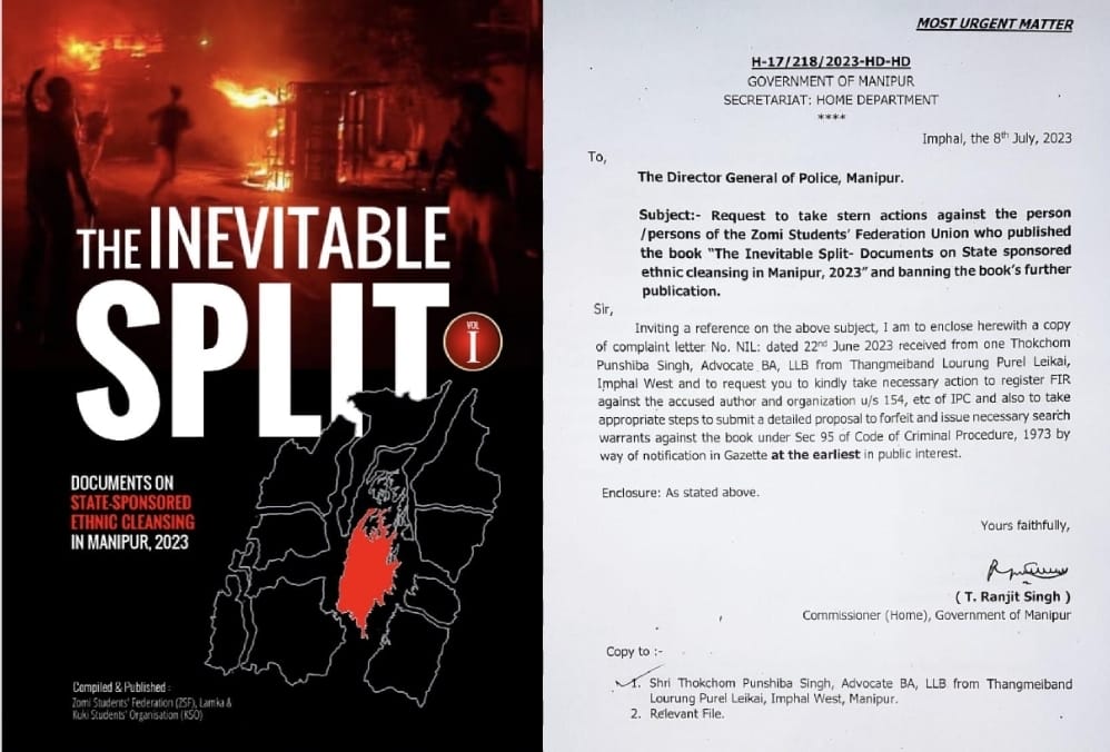 The Manipur government has banned a book called- “The Inevitable Split- Documents on State-sponsored ethnic cleansing in Manipur, 2023” compiled and published by the Zomi Students’ Federation (ZSF) and Kuki Students' Organisation (KSO), Lamka.