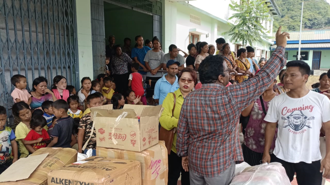 The distribution of the relief materials in Kangpokpi district by the Manipur Victims Relief Committee, Telangana, and Andhra Pradesh was conducted in collaboration with the Relief Committee of Committee on Tribal Unity Sadar Hills.