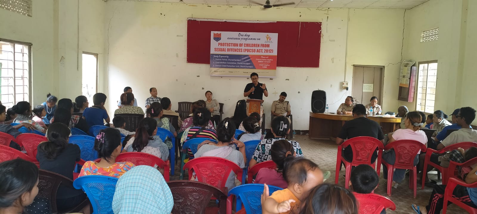 A One Day Awareness Programme on the Protection of Children from Sexual Offences (POCSO) Act, 2012 was successfully conducted today at the Sadbhavana Mandap Relief Camp, Tuibong. The event was jointly organised by the District Police, Child Welfare Committee (CWC) Churachandpur, and the District Child Protection Unit (DCPU), Churachandpur.
